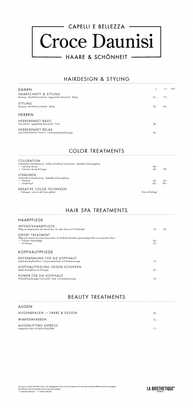 Preisliste – Capelli é Bellezza by Croce Daunisi